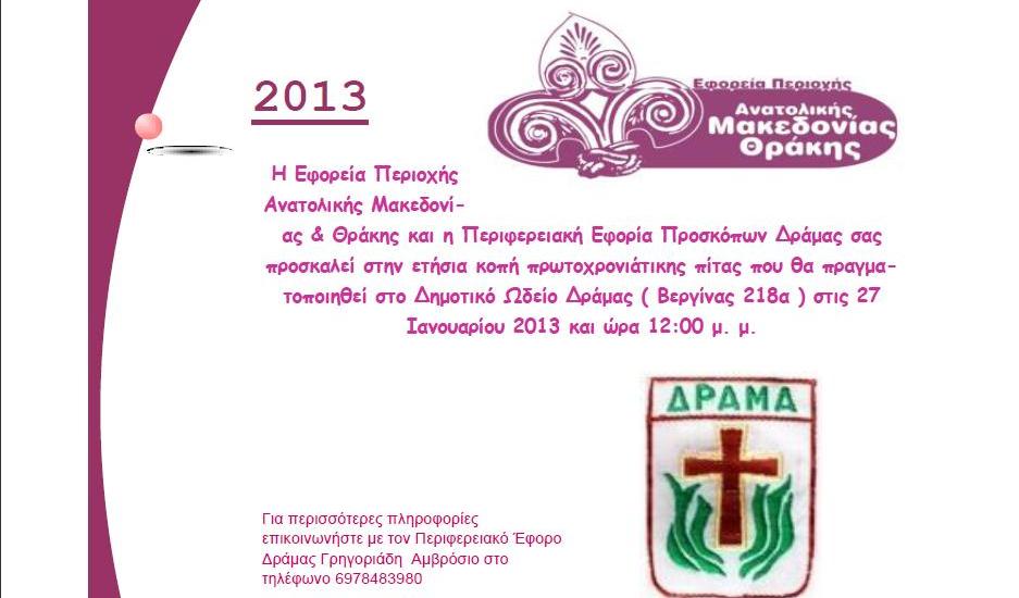 Την Κυριακή 27 Ιανουαρίου μας δίνετε η ευκαιρία να βρεθούμε όλοι μαζί και πάλι για ανταλλάξουμε ευχές για το νέο έτος και να κόψουμε την Βασιλόπιτα μας.