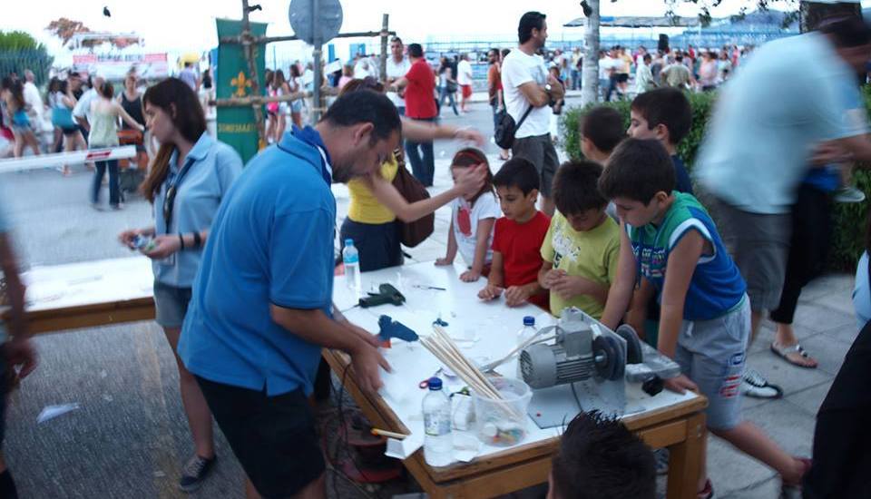 Στο δεύτερο περίπτερο μπροστά από το Διοικητήριο κάτω από ένα φανταστικό στημένο αλεξίπτωτο υπήρχαν εργαστήρια όπου τα παιδιά με τη βοήθεια των Βαθμοφόρων του Συστήματος κατασκεύαζαν αεριωθούμενα από απλά υλικά, σαΐτες και διάφορες κατασκευές που πετούσαν, με αποτέλεσμα οι παραλιακές καφετέριες να γεμίσουν με πτητικά αντικείμενα και τα παιδιά να αποκτήσουν μια χειροπιαστή επαφή με τον αερομοντελισμό με τις κατασκευές τους.