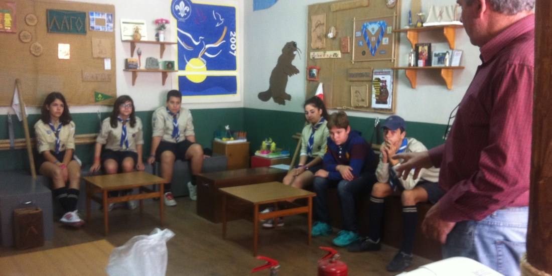 Είναι όμορφο όταν οι ίδιοι πρόσκοποι μπαίνουν στην διαδικασία της αυτο- εκπαίδευσης τους έχοντας πάντα έναν στόχο. Κάπως έτσι ο Βαλάσης Σιμιτσής, ενωμοτάρχης των Λύκων, αποφάσισε να καλέσει τον πατέρα του, μηχανολόγο τεχνικό ασφαλείας για να μας παρουσιάσει τα είδη πυρκαγιών και τρόπο αντιμετώπισής τους όπως και τα είδη φορητών πυροσβεστήρων και χρήση τους. Ο ίδιος ανέλαβε ένα παιχνίδι με το συγκεκριμένο θέμα που πέραν των υπολοίπων κάθε πρόσκοπος μπόρεσε να διακρίνει τα είδη πραγματικών πυροσβεστήρων και να κάνει χρήση τους.