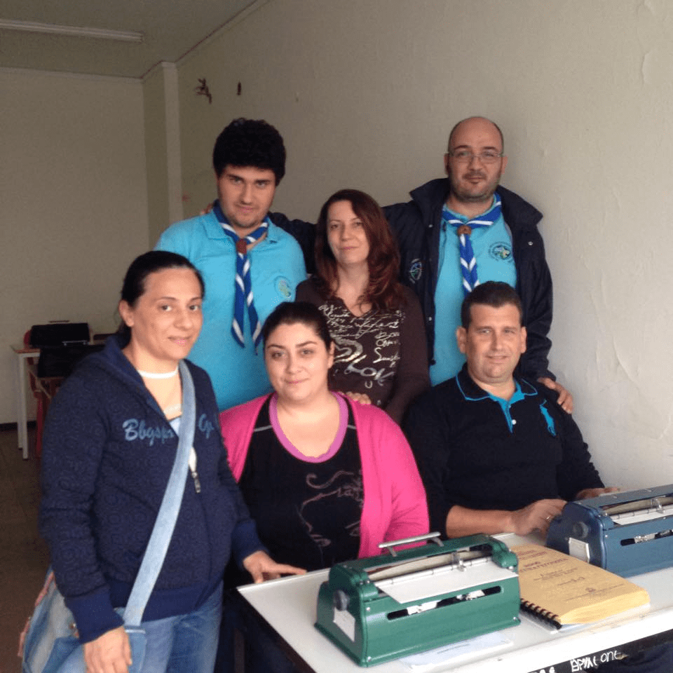‘Το Δίκτυο Αεροπροσκόπων’Δημοσιεύτηκε 15 Οκτωβρίου, 2014 στις 960 × 960 στη ΠΑΓΚΟΣΜΙΑ ΗΜΕΡΑ ΛΕΥΚΟΥ ΜΠΑΣΤΟΥΝΙΟΥ Εικόνα:2 Το Προσκοπικό Δίκτυο Αεροπροσκόπων με τον κο Κρεμμύδα μπροστά στις γραφομηχανές ‹ Return to post