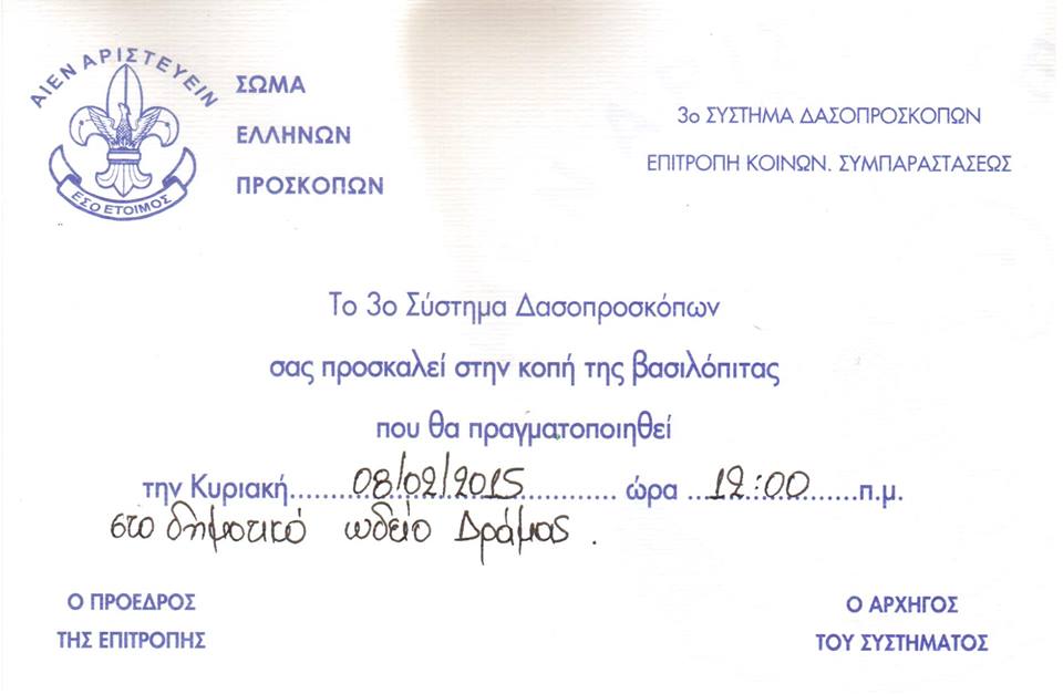 ‘10945035_840580212651554_3414466023125012874_n’Δημοσιεύτηκε 7 Φεβρουαρίου, 2015 στις 960 × 627 στη Κοπή πίτας 3ου Συστήματος Προσκόπων Δράμας ‹ Return to post