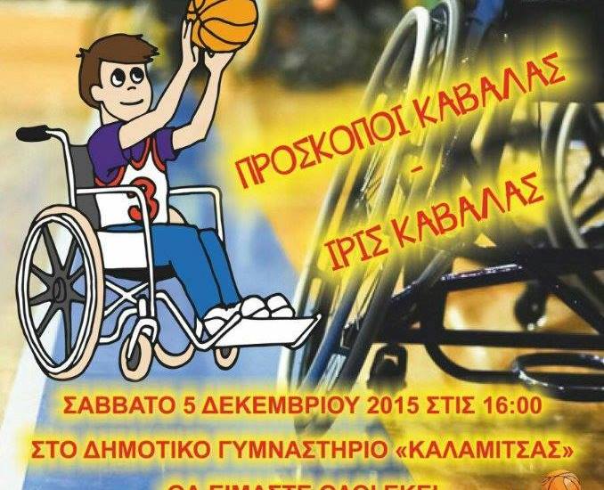 Ενόψει του εορτασμού της Παγκόσμιας Ημέρας Ατόμων με Ειδικές Ανάγκες (3 Δεκεμβρίου) διοργανώνεται Αγώνας καλαθοσφαίρισης μεταξύ ενηλίκων Προσκόπων της Καβάλας και των αθλητών του Αθλητικού Συλλόγου ΑμΕΑ «ΙΡΙΣ» Καβάλας σε αμαξίδια.