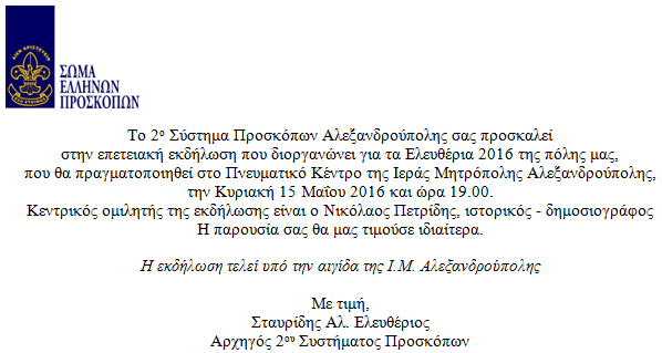 ‘prosklisi’Δημοσιεύτηκε 12 Μαΐου, 2016 στις 598 × 319 στη Πρόσκληση εκδήλωσης «Ελευθέρια 2016» από το 2ο Αλεξανδρούπολης ‹ Return to post