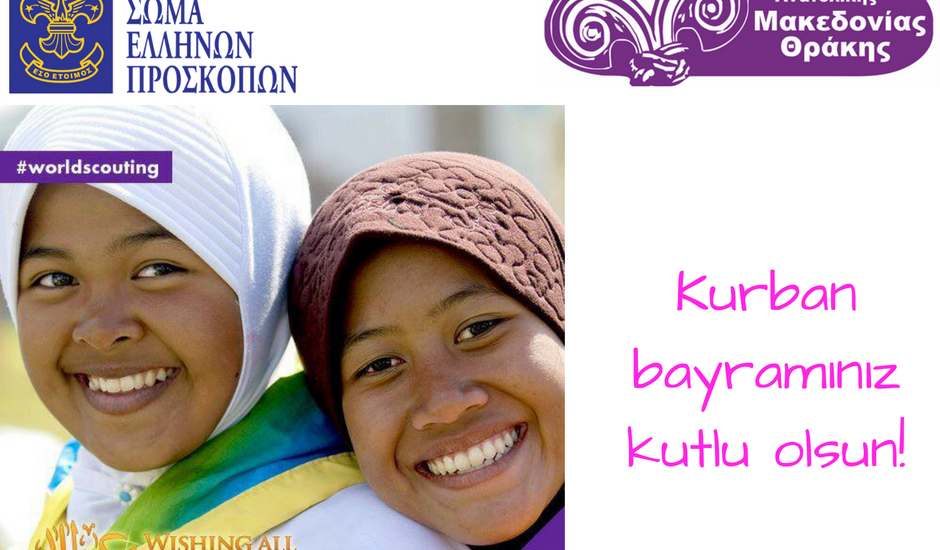 Με αφορμή την θρησκευτική εορτή των μουσουλμάνων, “Κουρμπάν Μπαϊράμ”, ευχόμαστε ολόψυχα σε όλους τους μουσουλμάνους συμπολίτες μας στην Θράκη, στους Αδελφούς μας Προσκόπους σε όλο τον Κόσμο και στις οικογένειές τους, χρόνια πολλά, ειρήνη, αγάπη, χαρά, υγεία, και ευημερία.