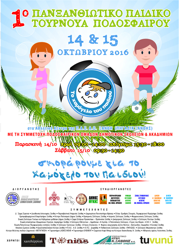 ‘afisa-xamogelo’Δημοσιεύτηκε 11 Οκτωβρίου, 2016 στις 591 × 832 στη Σκοράρουμε για το Χαμόγελο του Παιδιού – 1ο Πανξανθιώτικο Παιδικό Τουρνουά Ποδοσφαίρου ‹ Return to post