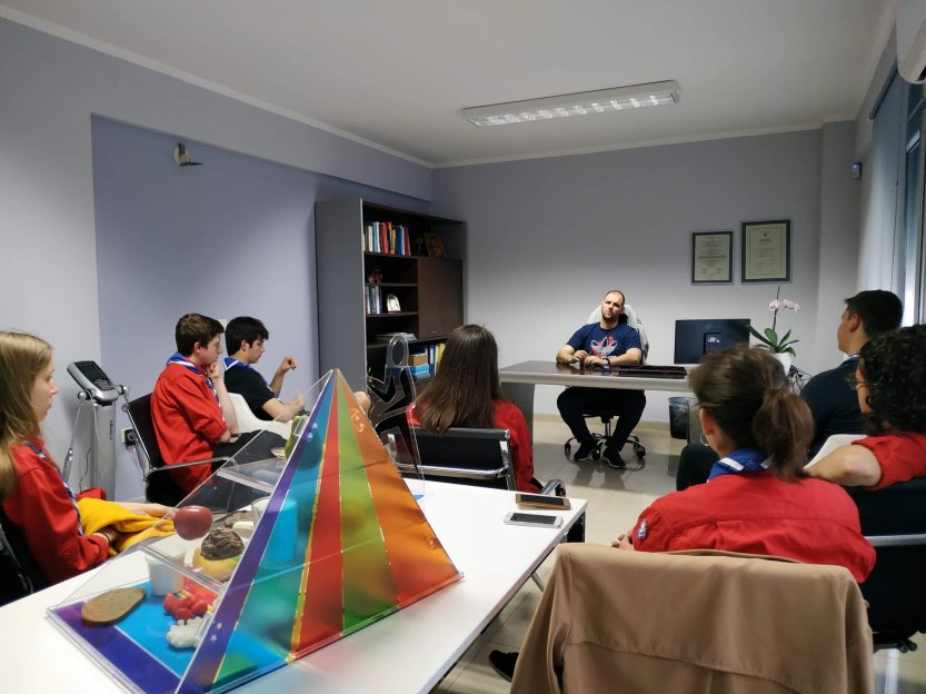 Το Σάββατο 25 Μαΐου 2019, η 1η Κοινότητα Ανιχνευτών Ξάνθης επισκέφτηκε τον διαιτολόγο-διατροφολόγο και πλέον φίλο τους κ. Σταμπουλή Θεόδωρο στο προσωπικό του γραφείο! Εκεί ενημερώθηκαν για την σύγχρονη πυραμίδα διατροφής, για την κατάλληλη διατροφή που πρέπει να ακολουθεί ένας σύγχρονος νέος και ιδιαίτερα ένας πρόσκοπος για να μπορεί να ανταπεξέλθει στις καθημερινές, δύσκολες και εύκολες, δραστηριότητες του, καθώς επίσης και για τις τροφές που είναι χωρισμένες ανάλογα με την συχνότητα κατανάλωσής τους. Στη συνέχεια ανέλυσαν με την βοήθεια του ειδικού τις πιο συνηθισμένες επιλογές ενός διατροφολογίου εκδρομής, ενημερώθηκαν για τους κατάλληλους συνδυασμούς τροφών και ζήτησαν συμβουλές για το διατροφολόγιο & την συχνότητα των γευμάτων της Μ.Δ.Υ. (Μεγάλης Δράσης Υπαίθρου) που πλησιάζει. Τέλος, μέσα από διάφορες συμβουλές του κ. Σταμπουλή, οι ανιχνευτές ενημερώθηκαν για την καλή υγεία μέσω σωστής διατροφής και είναι έτοιμοι να κάνουν πράξη αυτές τις συμβουλές στην καθημερινότητά τους. Η κοινότητα ευχαριστεί τον κ. Σταμπουλή για την πολύτιμη βοήθεια του!