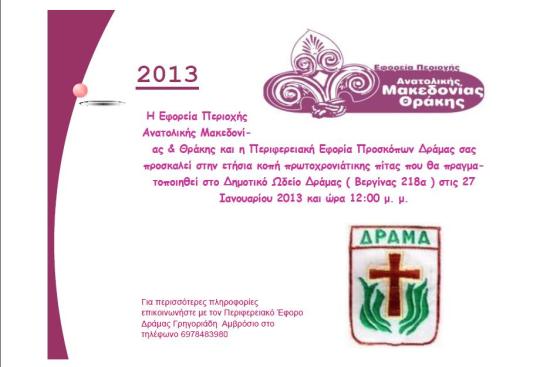 Η Εφορεία Περιοχής Ανατολικής Μακεδονίας και Θράκης και η Περιφερειακή Εφορεία Προσκόπων Δράμας σας προσκαλεί στην κοπή της πρωτοχρονιάτικης πίτας […]